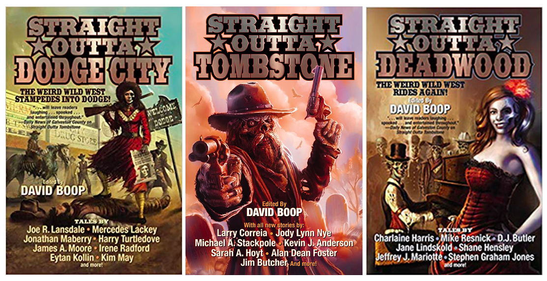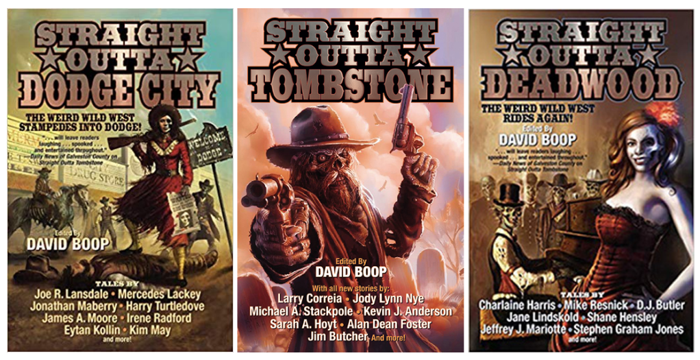 The Straight Outta series of Weird Western anthologies is a bestselling, award-nominated, three volume set of the West the way it really was crossed with the West that could’ve been: with vampires, aliens, zombie, time travel, and dragons! It features many bestselling authors such as Charlaine Harris, Larry Correia, Mercedes Lackey, Joe Lansdale, Jim Butcher, Jane Lindskold, Kevin J. Anderson, Harry Turtledove, Jody Lynn Nye, Alan Dean Foster, Samantha Lee Howe, Michael Stackpole, Jonathan Maberry, Milton Davis, the late Mike Resnick, and more.